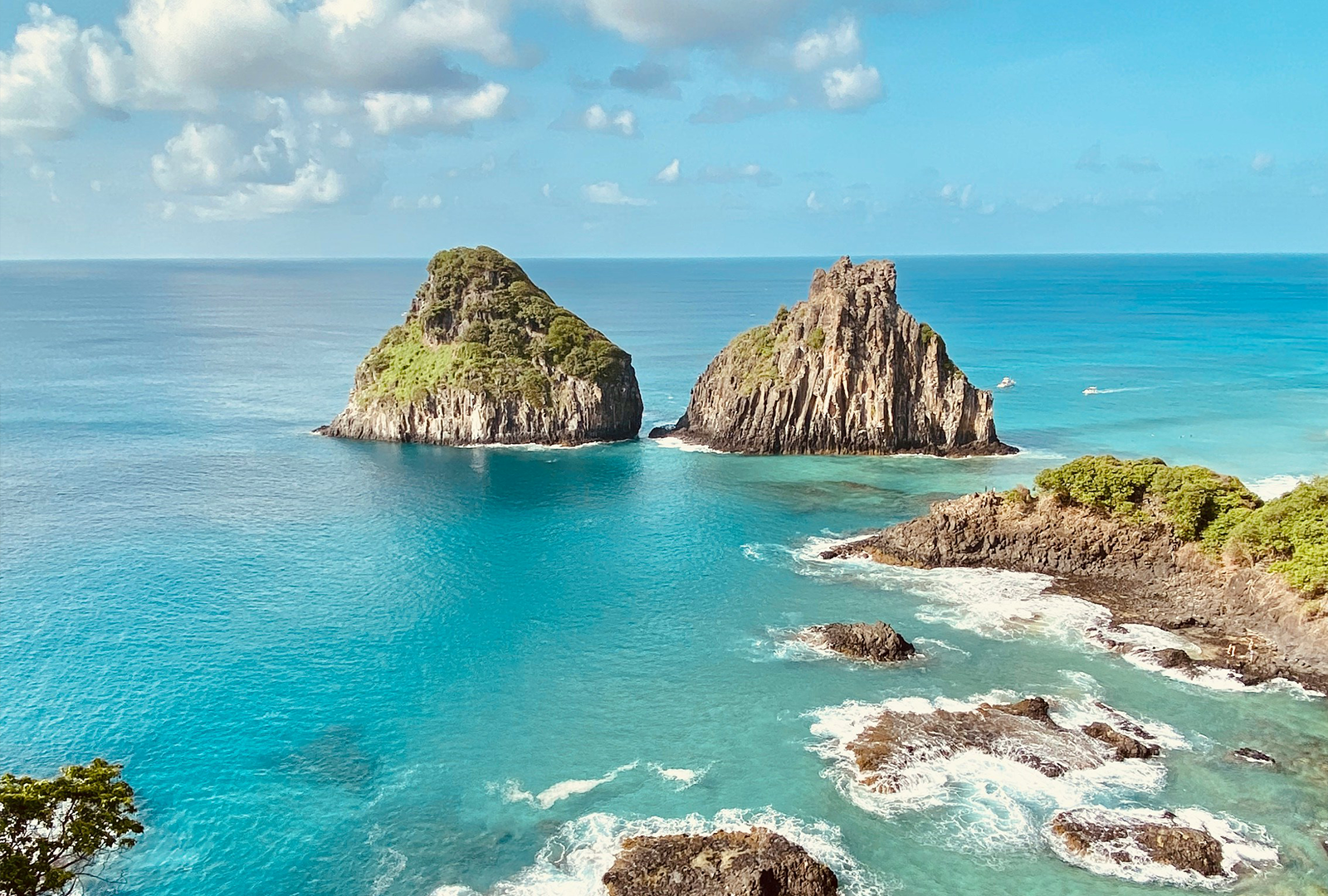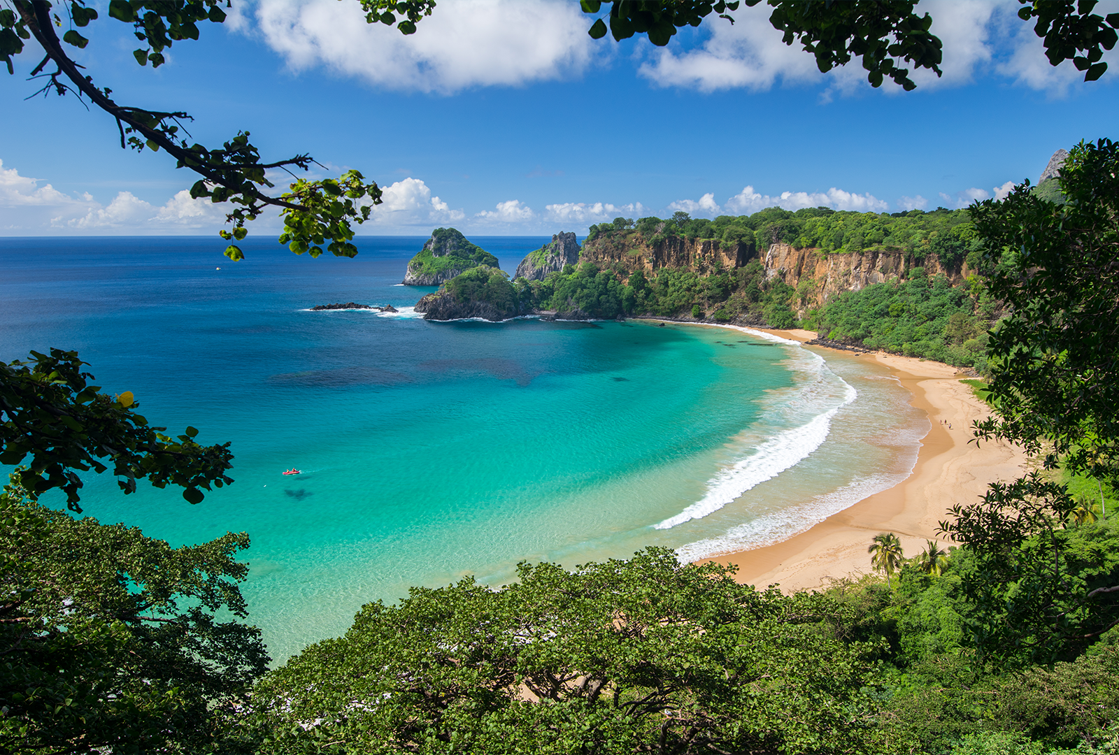 Saída do Porto Santo Antônio passando pelas praias do Porto, Ilhas Secundárias, Rugido do Leão, Praia do Cachorro, Praia do Meio, Morro de Fora, Conceição, Boldró, Americano, Bode, Quixabinha, Cacimba do Padre, Dois irmãos, Baía dos Porcos, Praia do Sancho e Baía dos Golfinhos.