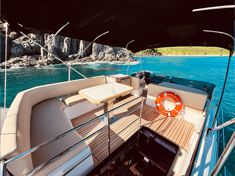 Passeio com diferencial exclusivo de entrada na Área do Parque, nosso iate tem permissão para ancorar na Praia do Sancho, para que os clientes possam apreciar a beleza e mergulhar.